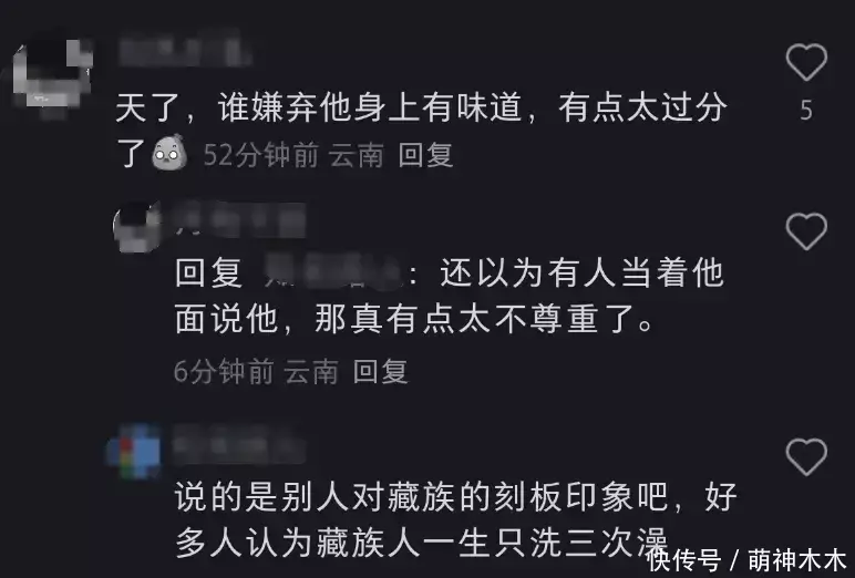 这则访谈发布后,有不少网友觉得,丁真长期生活在藏区,身上就算有味道也是正常的泸深投,那些当面说他身上有味道的人太不尊重人了。